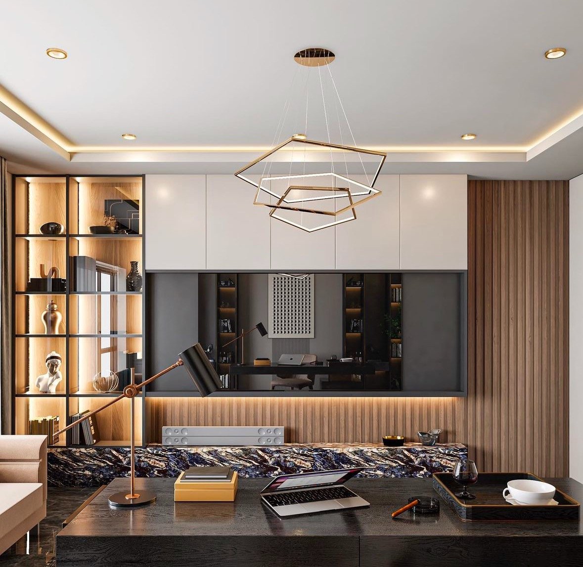 Bagi Anda yang memiliki ruang terbatas, backdrop TV dapat dirancang secara modular untuk memaksimalkan setiap sudut ruangan. Ini menjadikannya solusi hemat ruang tanpa mengorbankan estetika