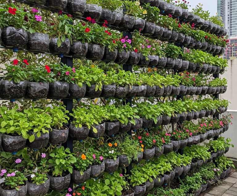 Taman Vertikal dari Botol Plastik: Botol plastik bekas bisa kamu gunakan untuk membuat taman vertikal yang indah. Caranya, potong botol plastik menjadi dua bagian, lalu tanam tanaman hias di dalamnya. Gantungkan botol plastik pada dinding atau pagar.